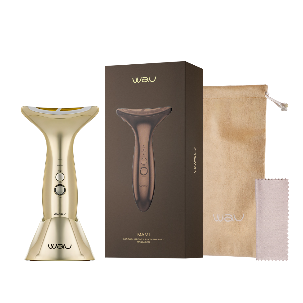 Wau MAMI NY är en avancerad 3-i-1 massageenhet som kombinerar mikroström, LED-terapi och vibration för att lyfta, strama upp och föryngra huden både i ansiktet och på halsen.